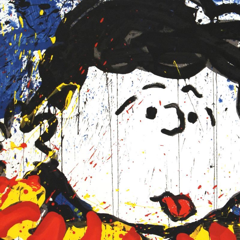 Master Artist Tom Everhart is the protege of famed "Peanuts" creator, Charles M. Schulz (1922â€"2000). As the only artist in the world granted the rights to draw the "Peanuts" characters in his own work, Everhart creates vibrant, extremely collectible rainbow masterpieces featuring Snoopy, Woodstock and the gang. "No Apologies" is a limited edition hand pulled original lithograph on museum quality deckle-edge paper, numbered and hand signed by Everhart! Includes certificate of authenticity! Measures approx. 30" x 22.5" (image only/no border). This artwork was created on one of two rare antique Marinoni Voirin lithograph presses that date back to the 1800's, and are reputed to come from the Paris print shop used by Henri Toulouse-Lautrec. There are only 7 of these magnificent beasts left in the world: the smaller one (with a print bed size of 25" x 35"), weighs 9 tons, and the larger one weighs in at 11 tons (print bed size 31" x 47"). The significance of this is that the lithographs produced by this method are of the finest quality, using techniques that are so labor and time intensive that very few master printers know how to operate and care for these presses today. Each lithograph is created with hand-mixed colors applied one at a time - a highly trained and synchronized team must hand feed each museum-quality sheet of paper through the press numerous times in order to set the colors and impressions, while the Chromist - a trained color specialist - adjusts each color by look and feel to match the original artwork, as if mixing a potion. The result is an image with maximum pigment saturation, formed through rich layers of color that imbue the artwork with a permanency of brilliance - proven over centuries to last. In contrast, today's printers use a method more akin to a dot matrix style application, with the colors all premixed and sprayed onto a sheet in a uniform layer, resulting in a much less saturated image that is susceptible to fading and imperfect color reproduction. This is one of the final Tom Everhart editions to be printed using this very special technique.
