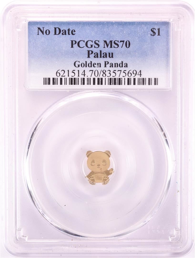 One No Date $1 Palau Golden Panda Gold Coin PCGS MS70. PCGS Graded.