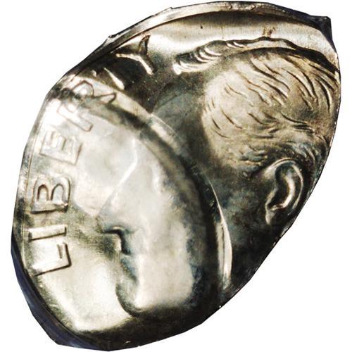 No Date 10C Roosevelt Dime--Flipover Double Strike on Undated[10C] Roosevelt Dime--Flipover Double S