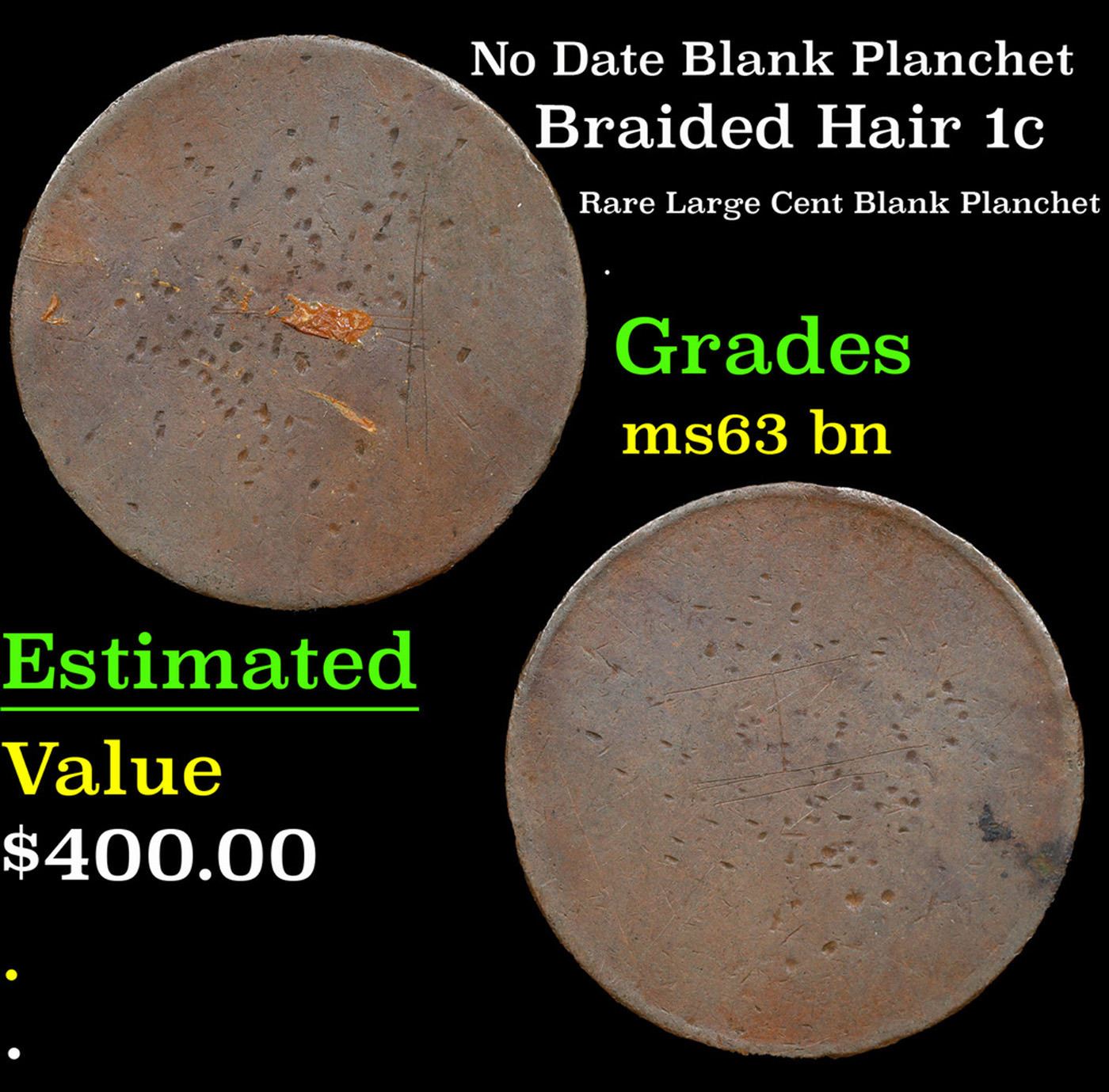No Date Blank Planchet Braided Hair Large Cent 1c Grades Select Unc BN.