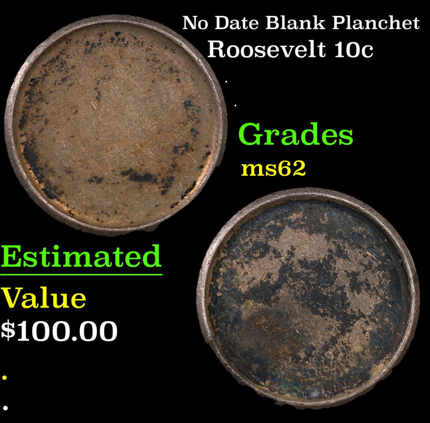 No Date Blank Planchet Roosevelt Dime 10c Grades Select Unc.