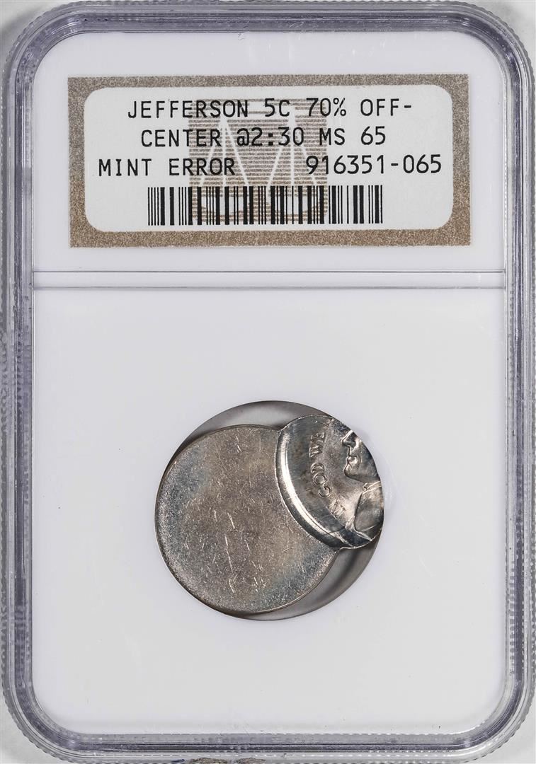 No Date Jefferson Nickel Coin Mint ERROR 70% Struck Off Center @ 2:30 NGC MS65