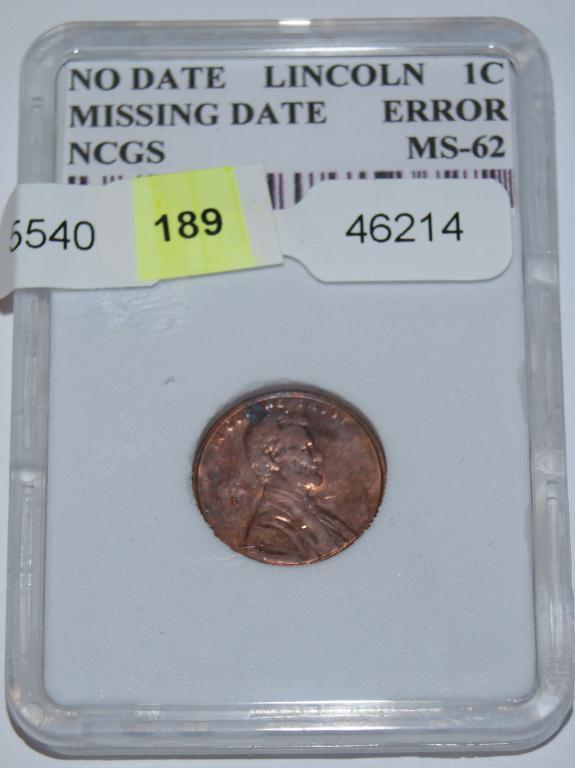 NCGS certified Mint State-62. Mintage estimate, less than 50. Retail value $1,600.00