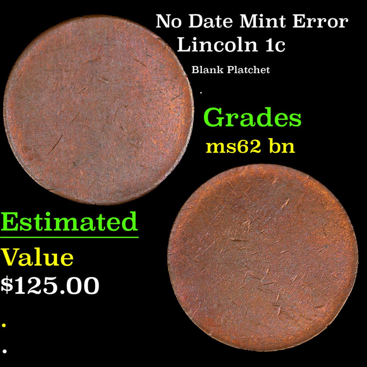 No Date Mint Error Lincoln Cent 1c Grades Select Unc BN.