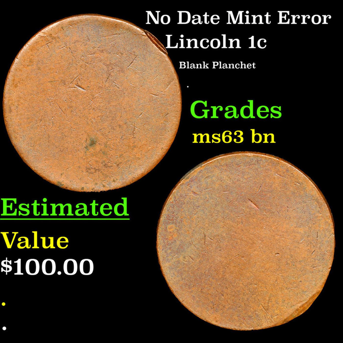No Date Mint Error Lincoln Cent 1c Grades Select Unc BN.