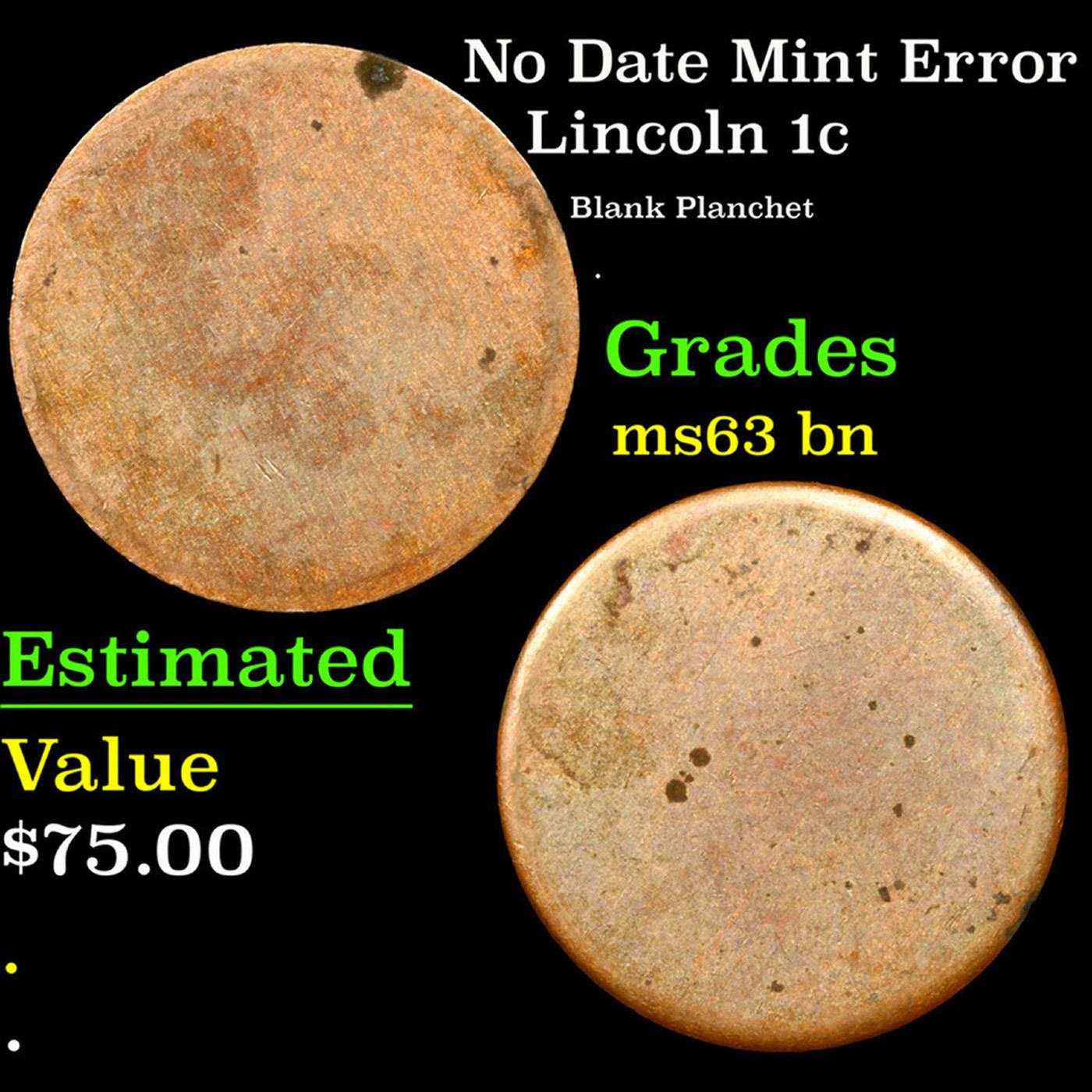 No Date Mint Error Lincoln Cent 1c Grades Select Unc BN.