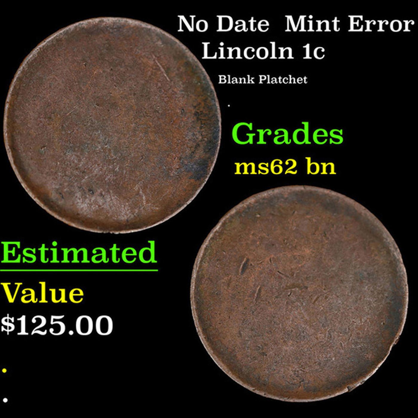 No Date Mint Error Lincoln Cent 1c Grades Select Unc BN.