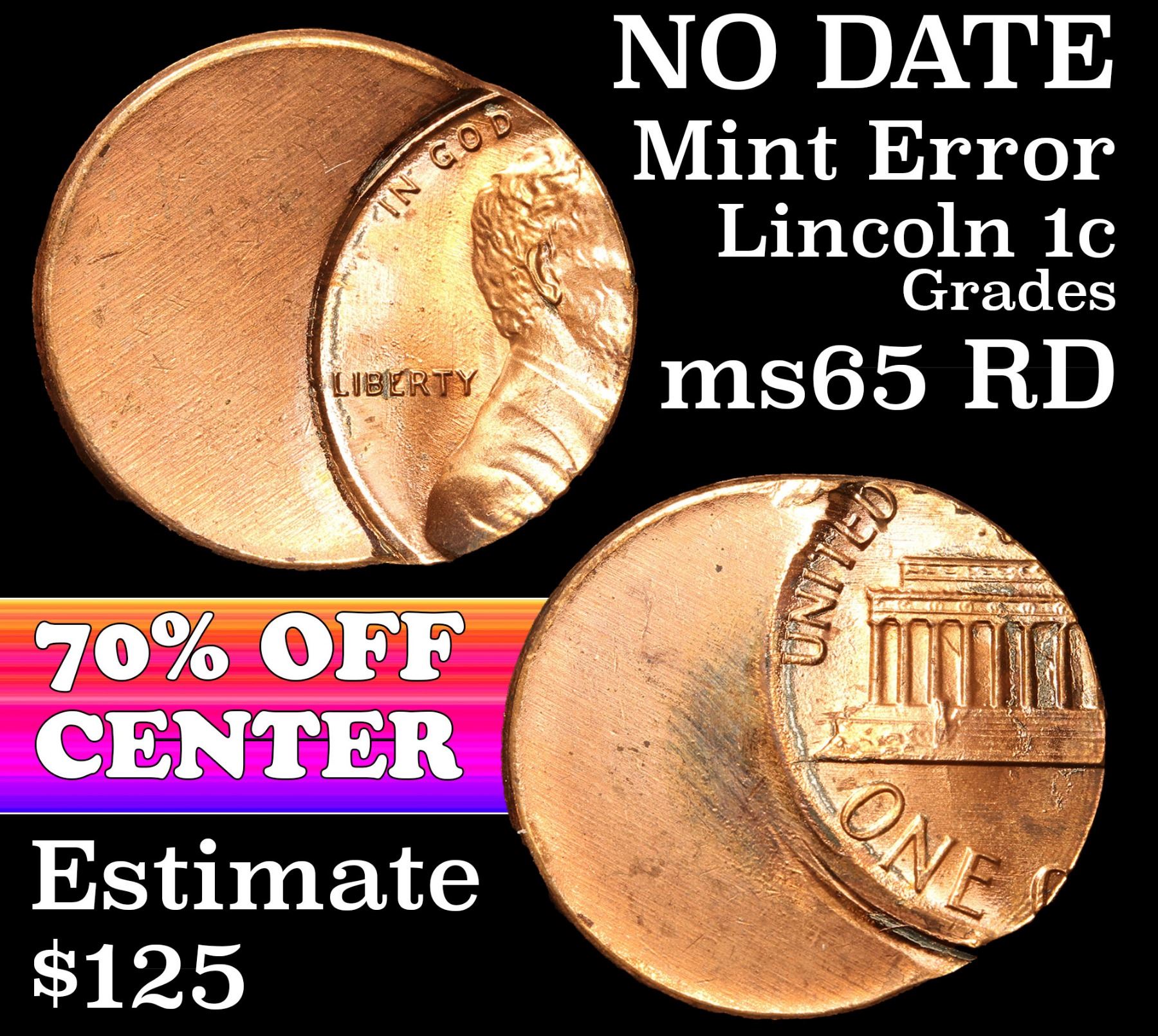 No Date Mint Error '70% off center' Lincoln Cent 1c Grades GEM Unc RD.