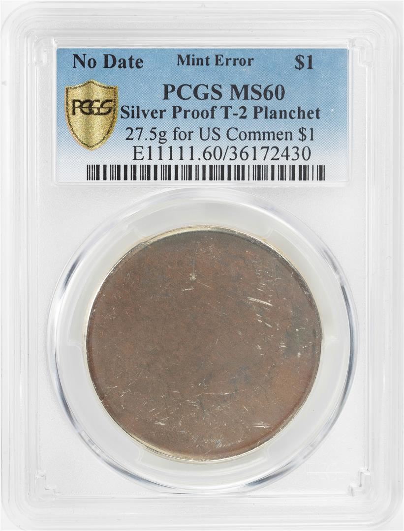 One No Date Proof $1 Mint Error T-2 Silver Planchet PCGS MS61. PCGS Graded.