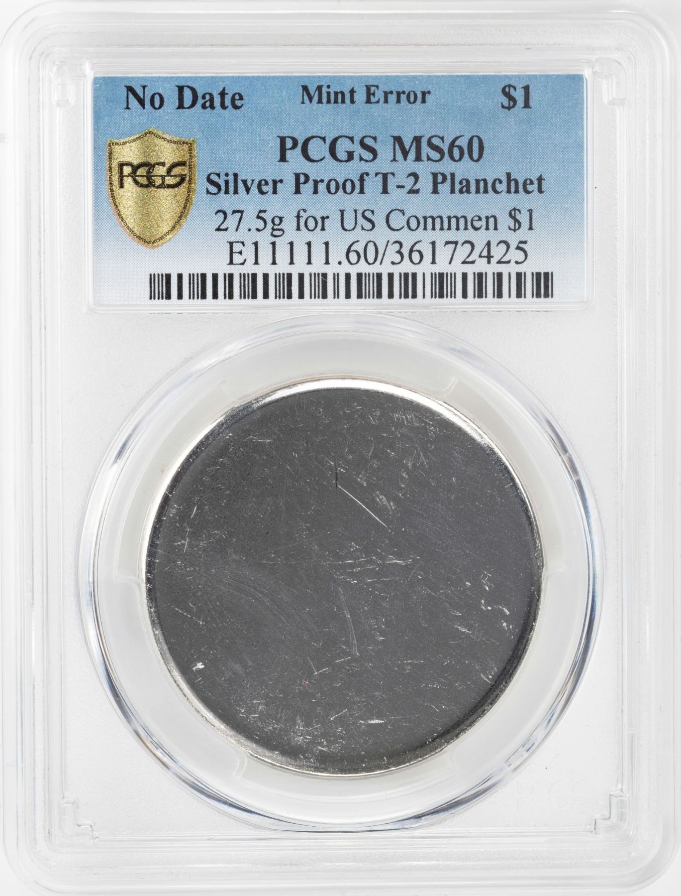 One No Date Proof $1 Mint Error T-2 Silver Planchet PCGS MS60.