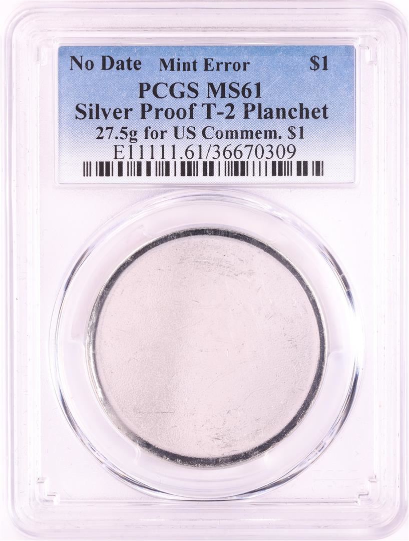 One No Date Proof $1 Mint Error T-2 Silver Planchet PCGS MS61. PCGS Graded.