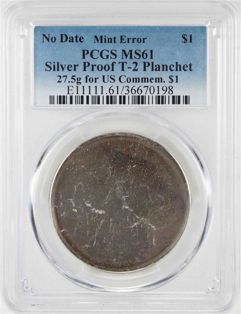 One No Date Proof $1 Mint Error T-2 Silver Planchet PCGS MS61. PCGS Graded.