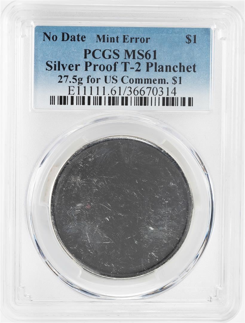 One No Date Proof $1 Mint Error T-2 Silver Planchet PCGS MS61. PCGS Graded.