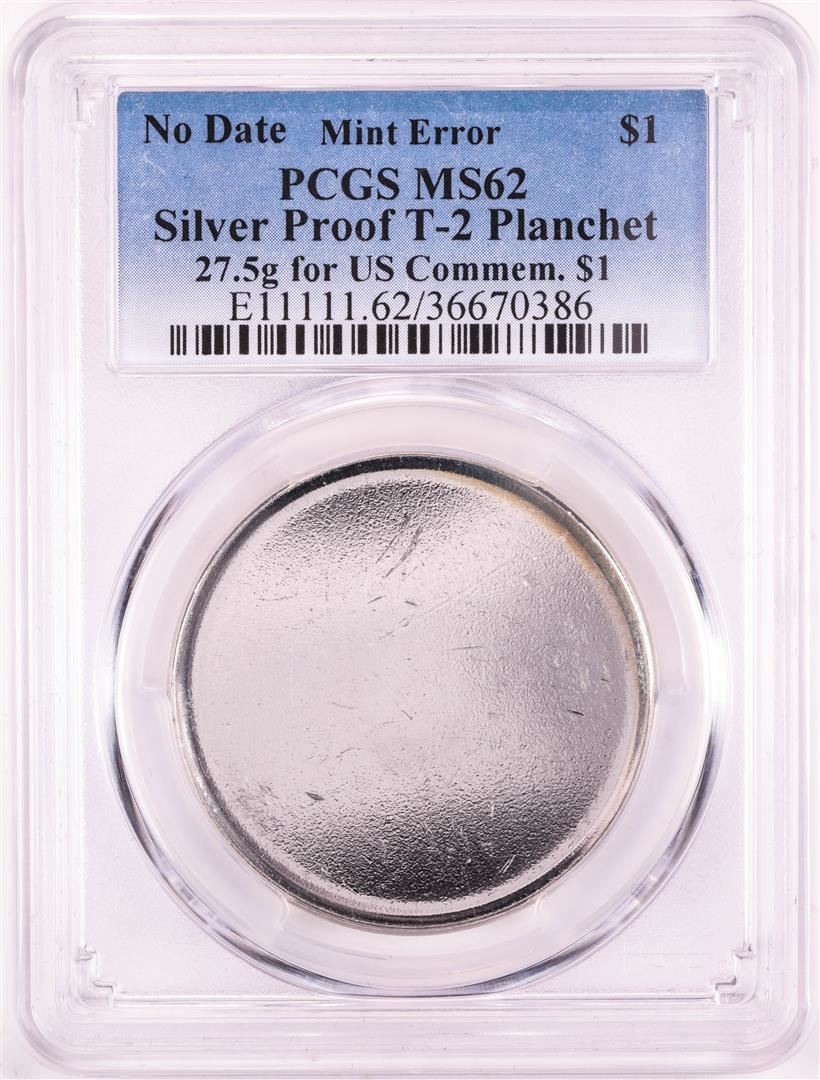 One No Date Proof $1 Mint Error T-2 Silver Planchet PCGS MS62. PCGS Graded.