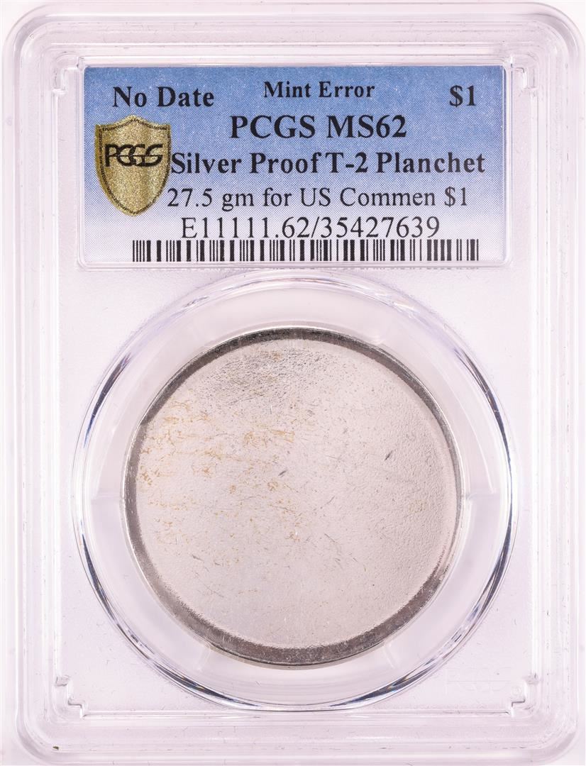 One No Date Proof $1 Mint Error T-2 Silver Planchet PCGS MS62. PCGS Graded.