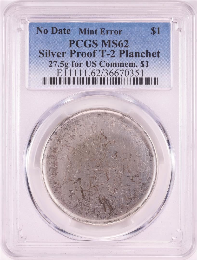 One No Date Proof $1 Mint Error T-2 Silver Planchet PCGS MS62. PCGS Graded.