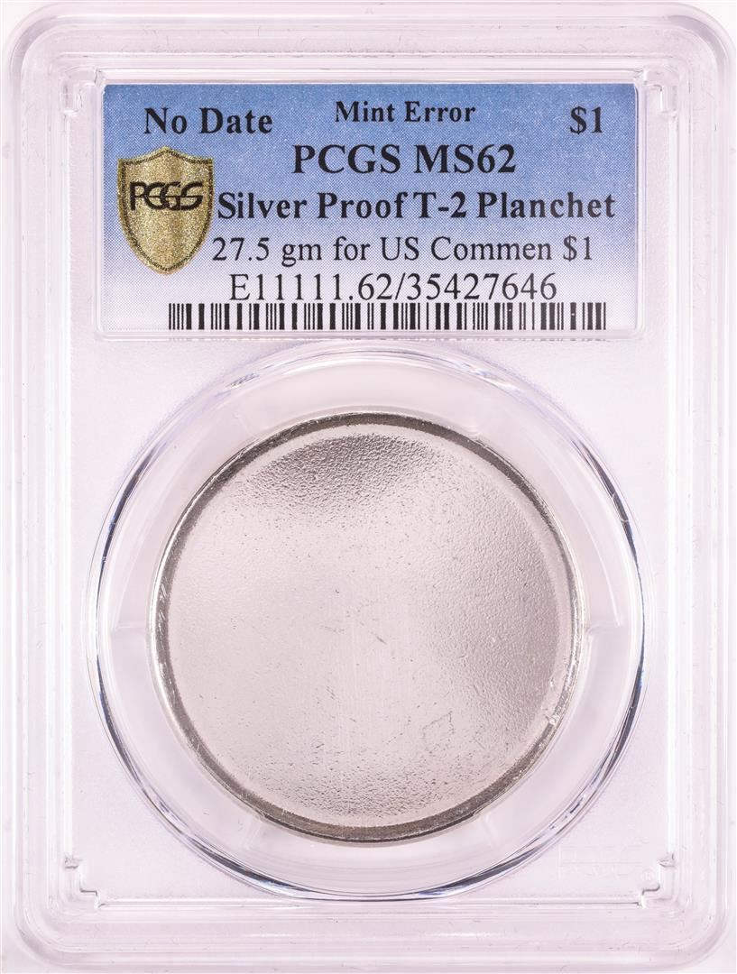 One No Date Proof $1 Mint Error T-2 Silver Planchet PCGS MS62. PCGS Graded.