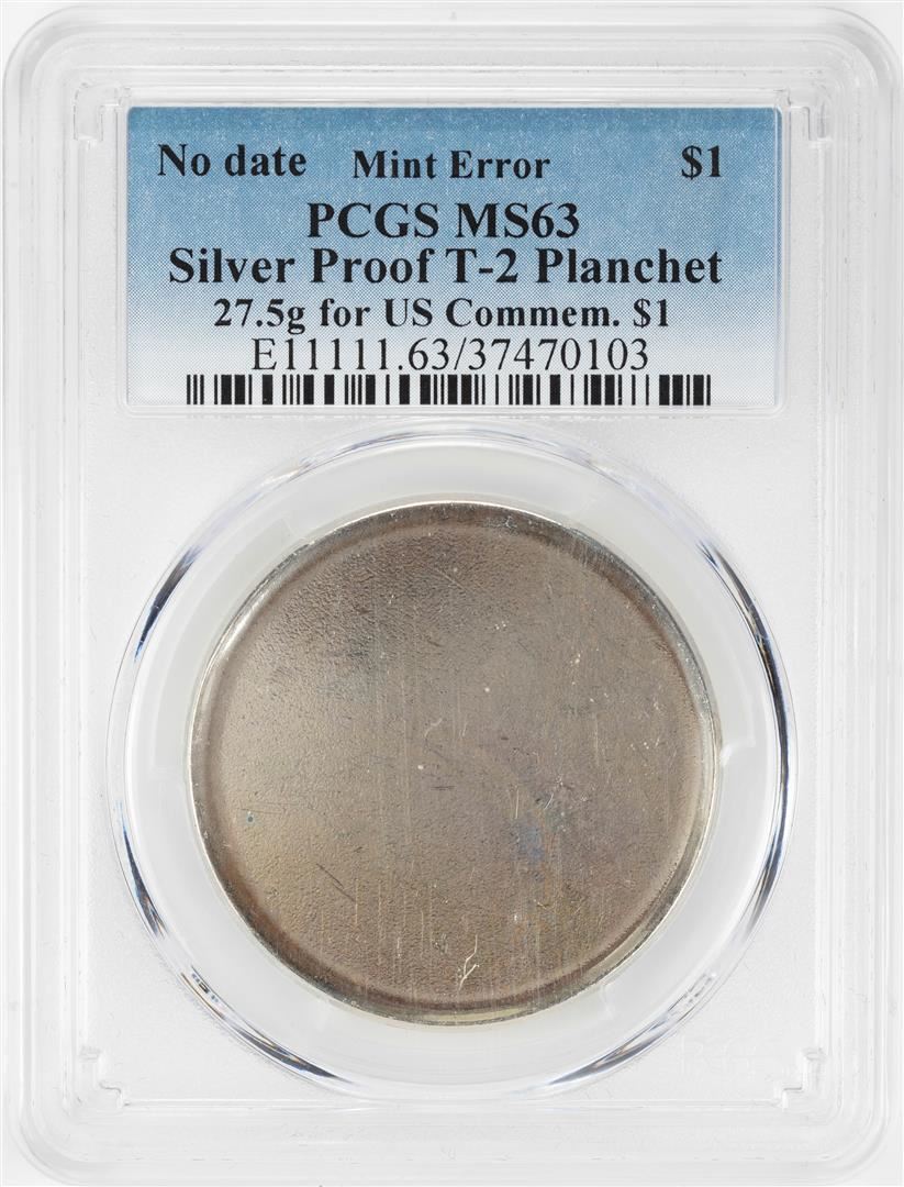 One No Date Proof $1 Mint Error T-2 Silver Planchet PCGS MS63. PCGS Graded.