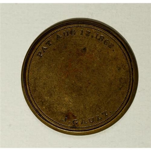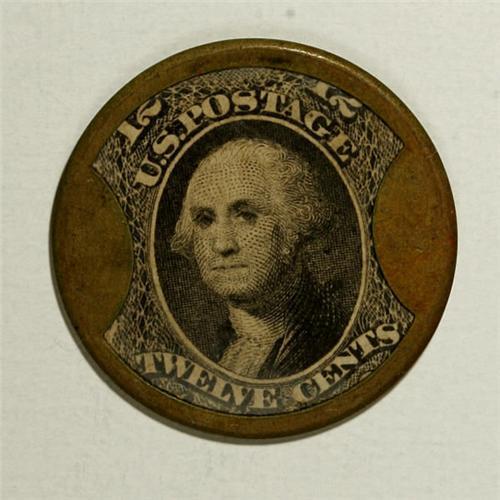 <B>HB-135 EP-148 12¢ J. Gault Choice Extremely Fine.</B></I> The case is a beautiful, even, medium brown, the stamp is bright and perfectly centered, and the mica is essentially perfect. It's tightly, evenly and perfectly closed all the way around, allowing for not the slightest suspicion of this piece's genuineness. A beautiful example of a scarce and popular denomination.<BR><BR><b>Shipping:</b> Coins & Currency (<a target="_blank" href="http://www.heritageauctions.com/common/shipping.php">view shipping information</a>)
