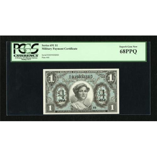 <B>Series 691 $1 PCGS Superb Gem New 68PPQ.</B></I> An attractive and perfectly original piece that is two points from perfect. <BR><BR><b>Shipping:</b> Coins & Currency (<a target="_blank" href="http://www.heritageauctions.com/common/shipping.php">view shipping information</a>)