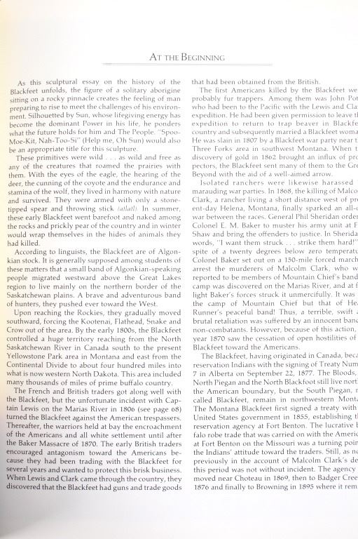 Through the bronze sculptures and insightful text of Bob Scriver, the recipient of the 1990 Montana Governor's Award for Distinguished Achievement in the Arts, No More Buffalo, traces the history of the Blackfeet nomadic pre-horse days, through the coming of the horse, to the flowering of their materially and spiritually rich culture in the 18th and 19th centuries. The 53 powerful sculptures, stunningly reproduced in color, honor the Blackfeet Indians that Scriver grew up with, and portray his very special understanding of the traditions of the Blackfeet culture. No library of Native American material is complete without this monumental work.
