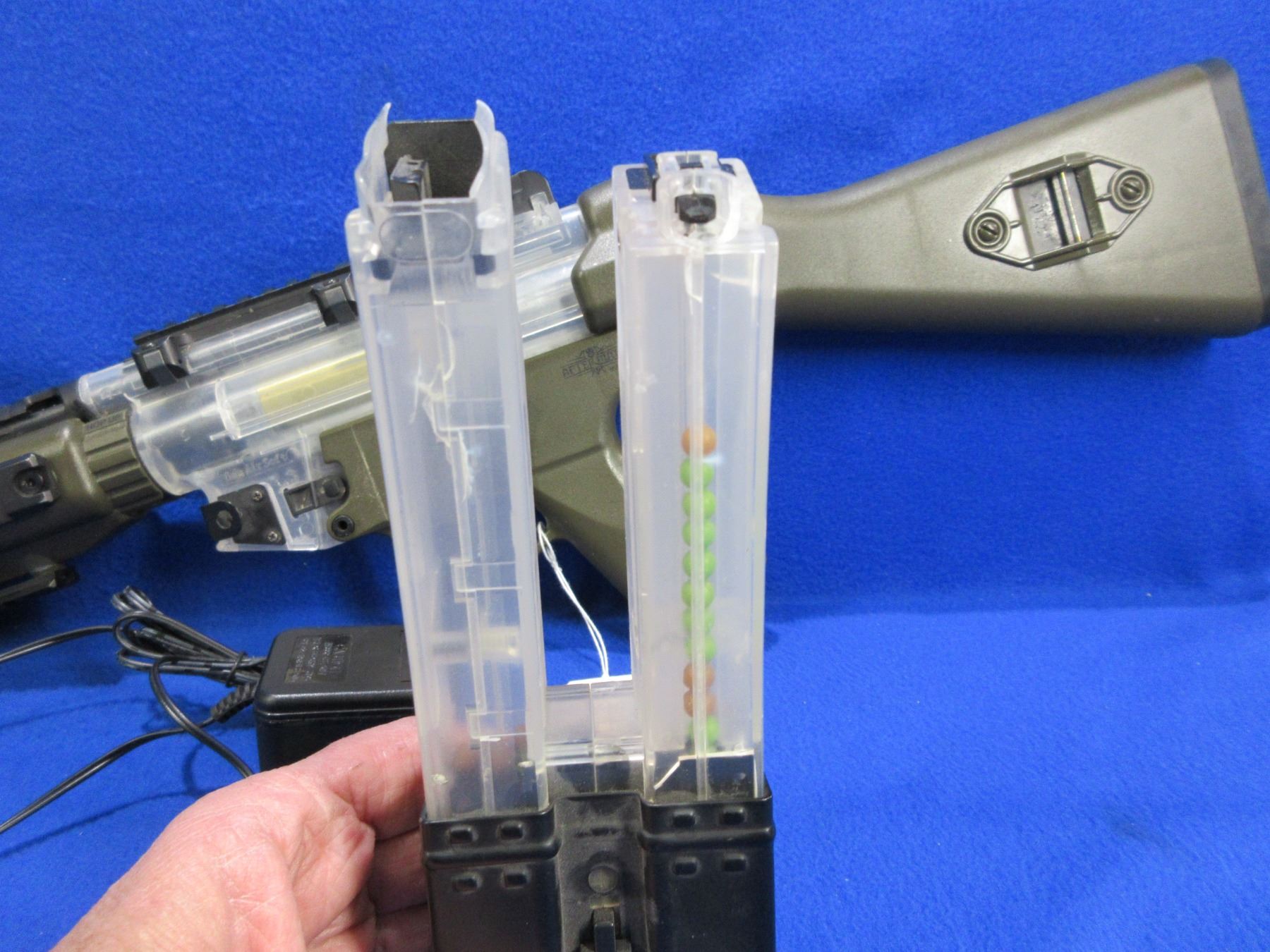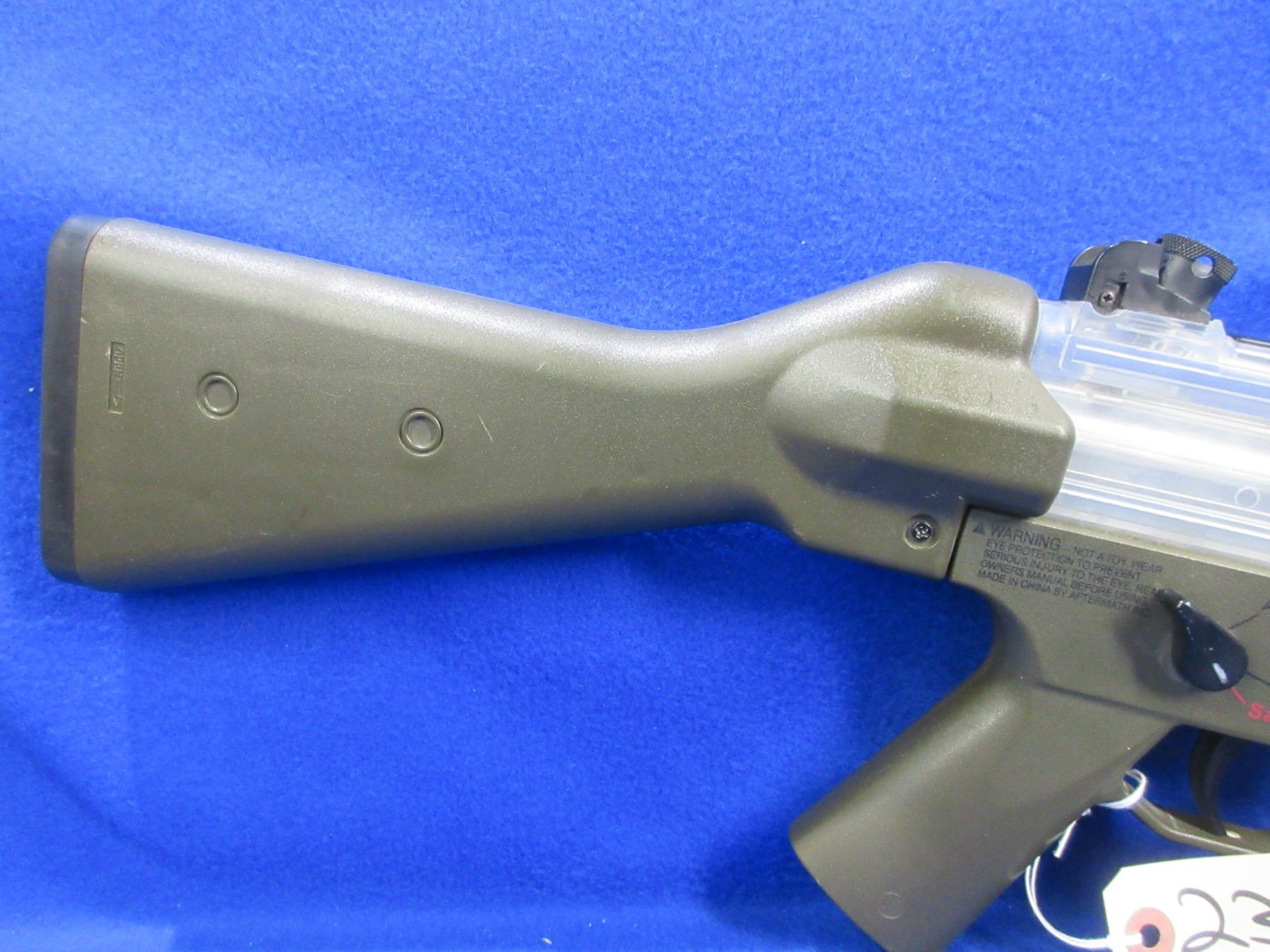 No PAL Required - Aftermath MP5 Air Soft in 6mm. - This full auto air rifle appears to be in working order but not tested. Comes with double stack magazine and battery charger. Untested.