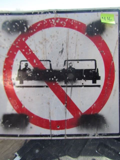 No Passing sign, has .22 caliber bullet holes in it, (Aluminum) 29’’x30’’