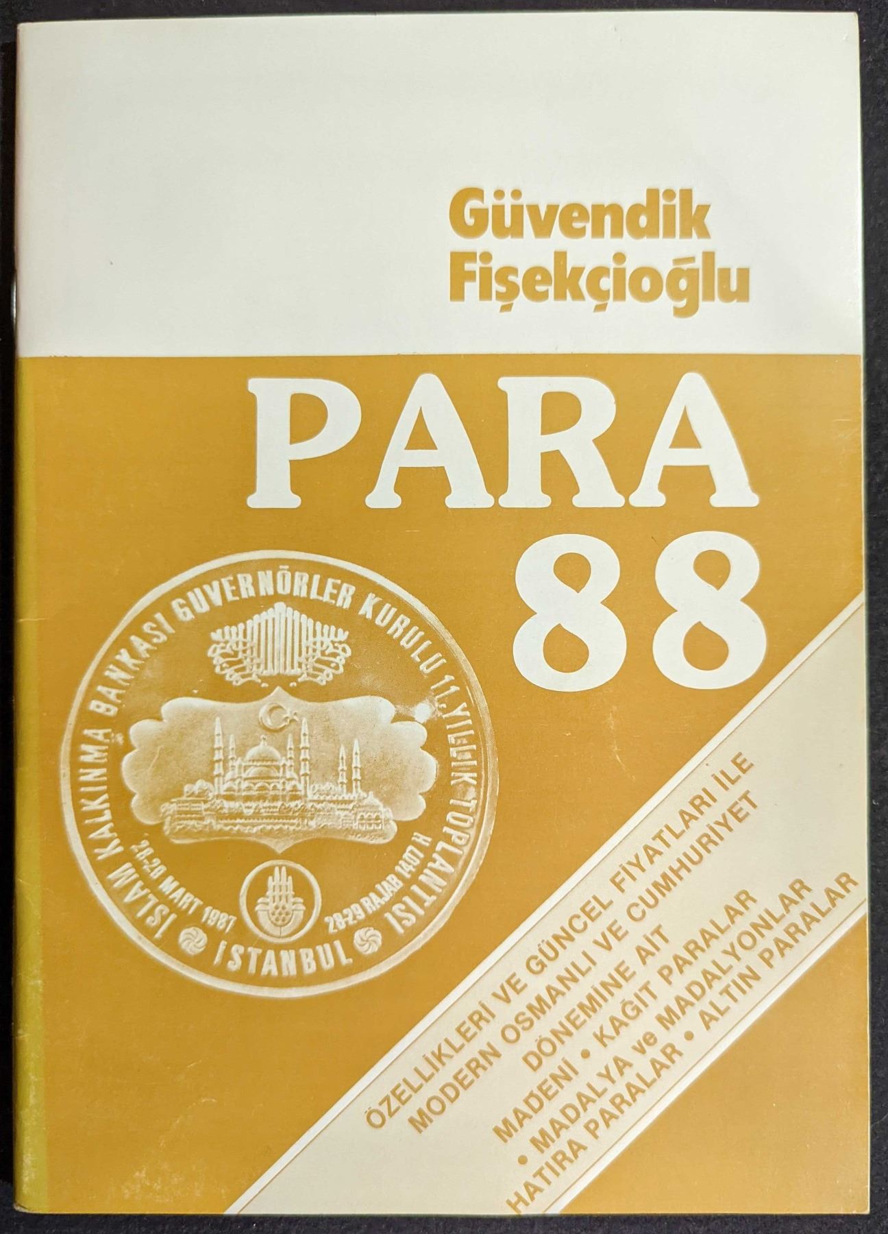 (6) Para 88 by Guvendik Fisekciogiu. 1988. Softvover. 8vo. 64 pages. Illustrated. Fine. This book is a price guide to Modern Ottoman Empire and Turkish Republic Period Coins, Paper Money, Commemoratives, and Medals. Lot weight: 4 lbs 3oz. Subject(s): Coinage - Turkey, Ottoman Empire.