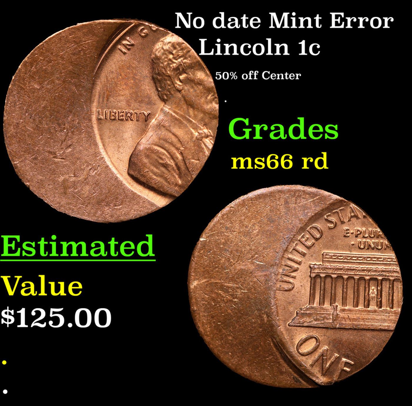 No date Mint Error Lincoln Cent 1c Grades GEM+ Unc RD.