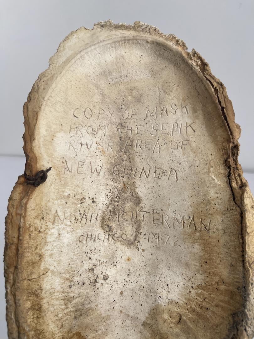 Nice piece. Signed on back as shown. 12" tall by 7" wide. Noah Michael Lichterman, 91, died of natural causes Monday, Jan. 9, 2005, at Hillside Manor Nursing Home. Born in Chicago on March 11, 1914, he was the last of five children of Lewis and Emma Dolitzky Lichterman, who had emigrated from Russia. On July 4, 1940, he married Estelle Epstein, with whom he had two daughters. Estelle died in September 1960, and in December 1961, he married Edith Baker. After he retired they moved to Missoula in 1975. Edith died in 1995. Noah had worked for many years at Rapaport Bros. Toy Co. in Chicago, where he was production manager and invented several toys. Because of the Great Depression he didn't finish college, but he was an avid reader, had a wide range of interests, and participated actively in a discussion group that met monthly for two decades. In retirement, he started doing artwork, including making molds and casting plaster reproductions of such things as New Guinea and Aztec masks and Egyptian and Norse sculptures, which he exhibited at art fairs in Montana.