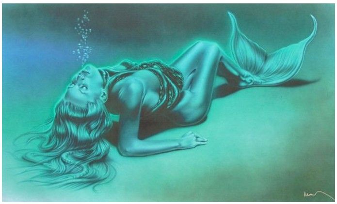 This is a hand signed large original giclee on canvas titled “MERMAID” by Noah. This piece is numbered from an edition of 250. Hand Signed by the artist. Canvas image size: 24" x 40". Comes with a gallery certificate of authenticity. Comes unframed, unstretched.