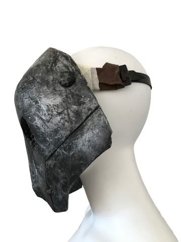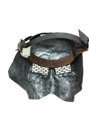 Noah (2014) - Screen Worn, stunt, Soldier Mask (w/ stunt actors name on tape inside - Luke Vexler) *1 strap side is broken but taped together*. The urethane mask is fitted with a plastic head suspension strap covered in suede fabric. Metal mesh pieces cover the eye opening. The mask is painted to look like metal. Excellent condition. Noah is a unique take on the story of Noah's ark. Noah is chosen by God to undertake a momentous mission before an apocalyptic flood cleanses the world. The film stars Russell Crowe, Jennifer Connelly, and Anthony Hopkins.