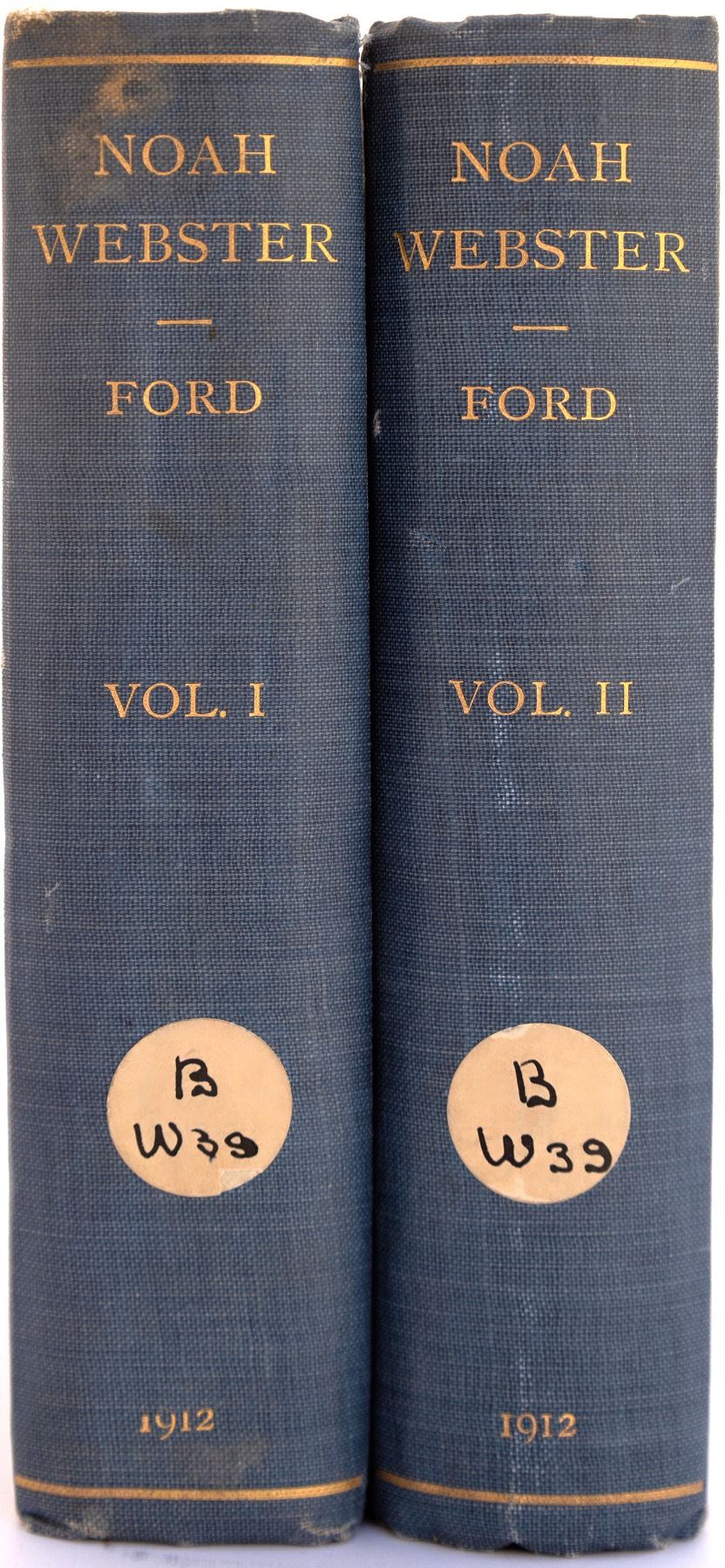 2 hardcovers, 1912. Notes on the life of Noah Webster, "an American lexicographer, textbook pioneer, English language spelling reformer, political writer, editor, and author." from Wikipedia