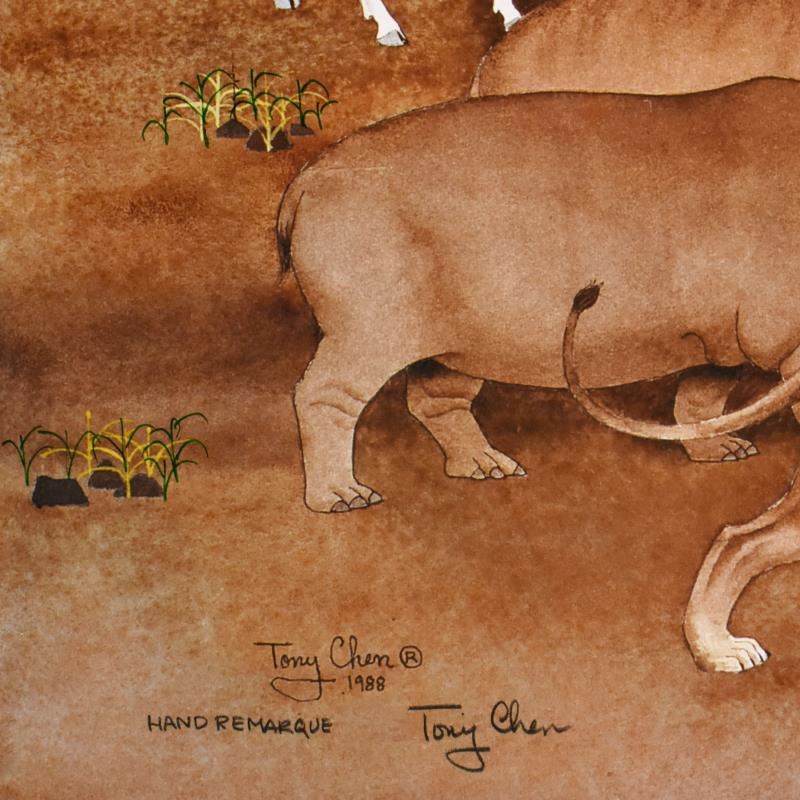 "Noah and the Animals" is a limited edition lithograph on paper with remarque by Tony Chen numbered and hand signed by the artist. Includes Letter of Authenticity. Measures approx. 34.5" x 24" (border) 30" x 22" (image).