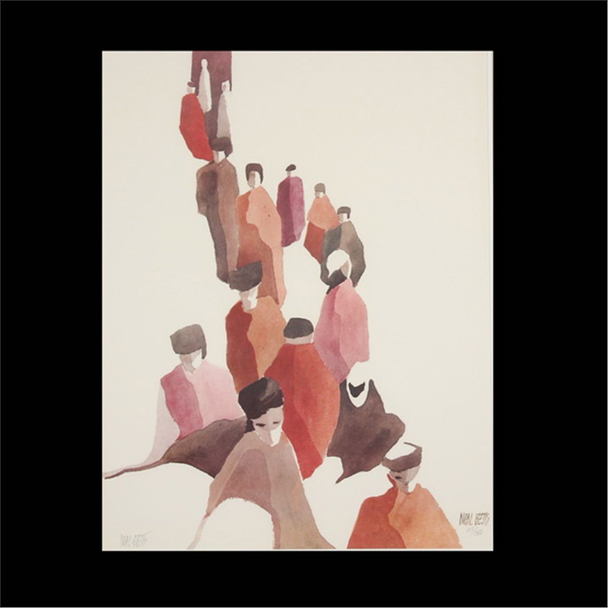 NOAL BETTS (American 1927-1993) Out and About Watercolor on paper SIght: 29.50 x 22 inches/ 74.9 x 55.8 centimeters Signed and numbered lower right "Noal Betts, 101/150" Signed lower left "Noal Betts" Frame: 39.75 x 31.50 inches/100.9 x 80 centimeters In good condition. Framed