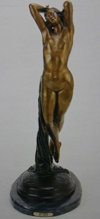 "Nocturne" Bronze Sculpture - After Collet - Beautiful Color Patina - Mounted On A Fine Italian Marble Base - Beautifully Detailed - Signed - Mint Condition - 40"H X 14"W - Lost Wax Cast Bronze