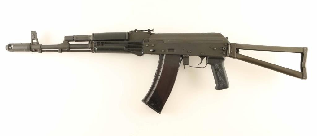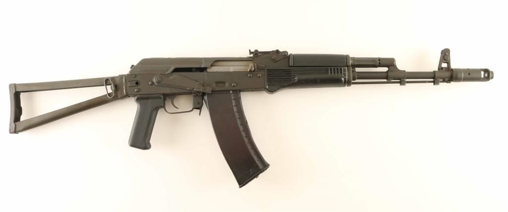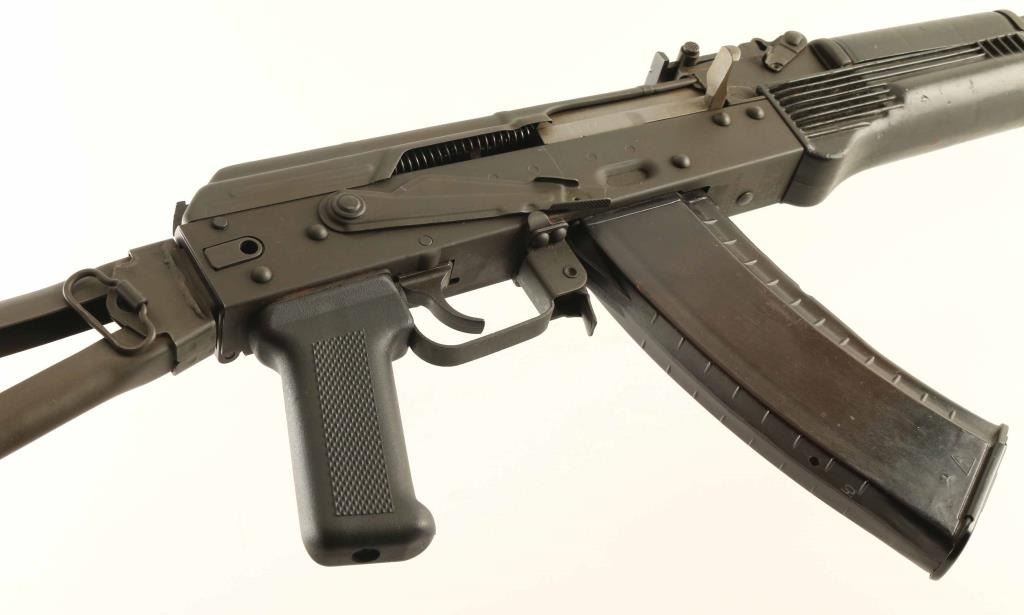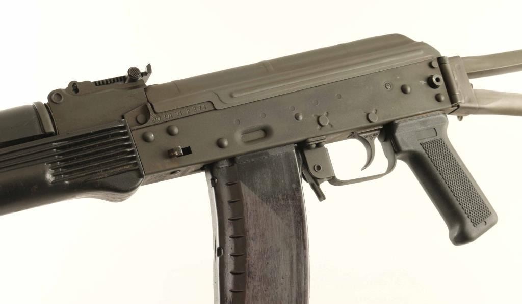 Rifle, Semi-automatic. Styled on the Bulgarian AK 74, and built with a NoDak Spud receiver. 16" barrel, with elevation adjustable front sight, and adjustable rear sights. Muzzle break attached. Cleaning rod present. Steel triangle folding stock. Black plastic 2-piece hand guards, and pistol grip. Bore appears excellent/bright. Action is crisps/tight. Bulgarian marked trunion. Metal finish is very good, with some minor scratches. Same with the furniture. Comes with one 30-rd black polymer magazine. NRA Condition-Very Good, plus. Modern Firearm.