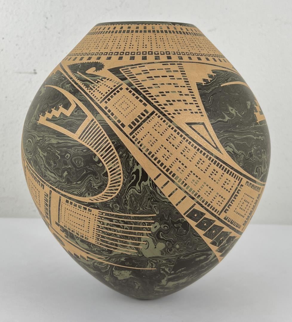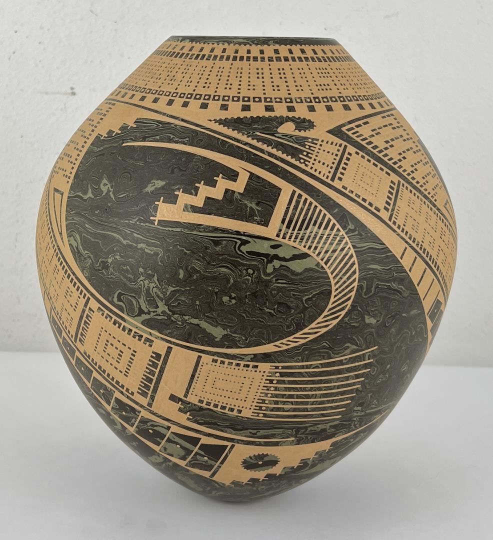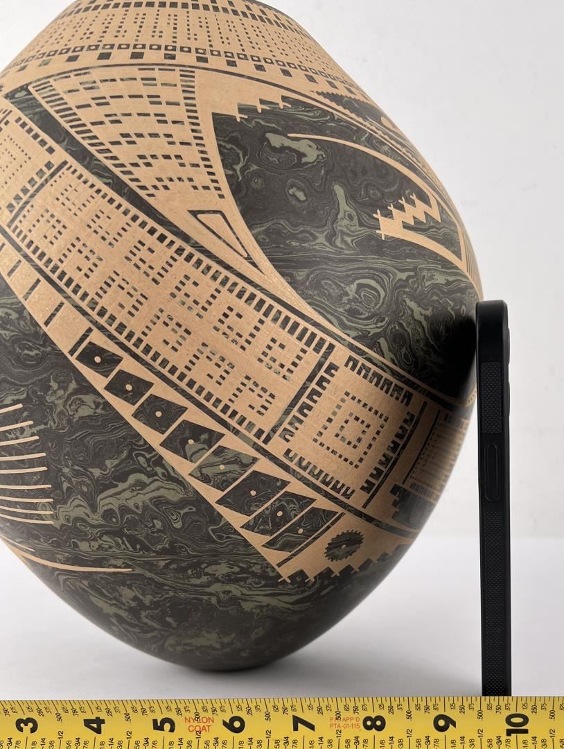 11" tall. Stunning large example of his work. Marbled glaze finish.