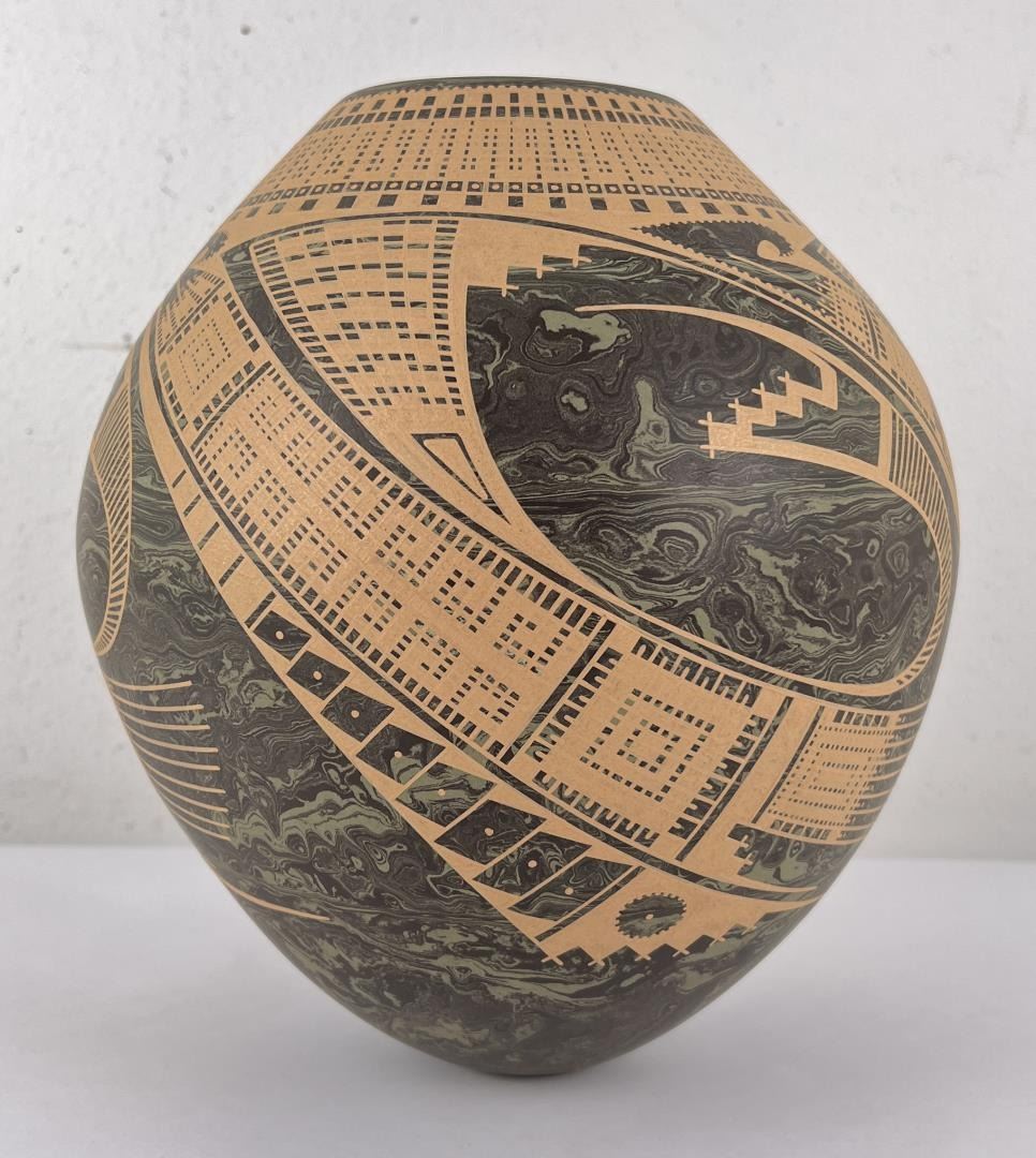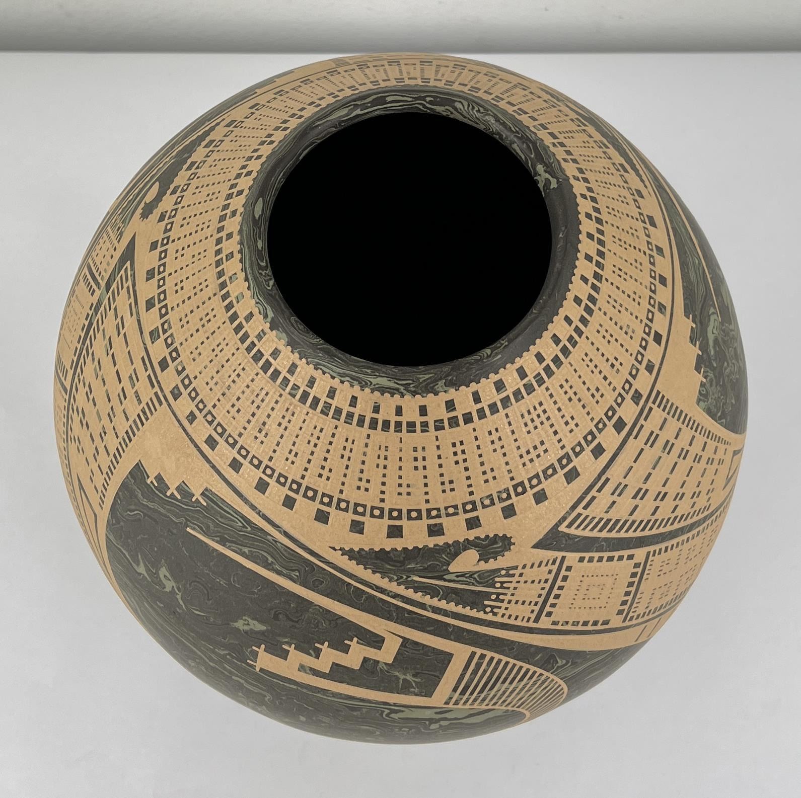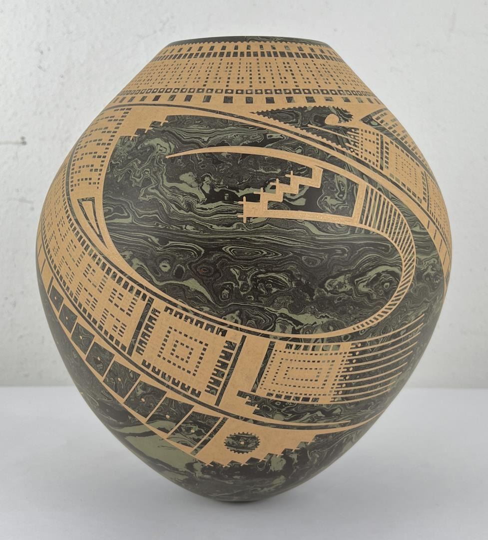 11" tall. Stunning large example of his work. Marbled glaze finish.