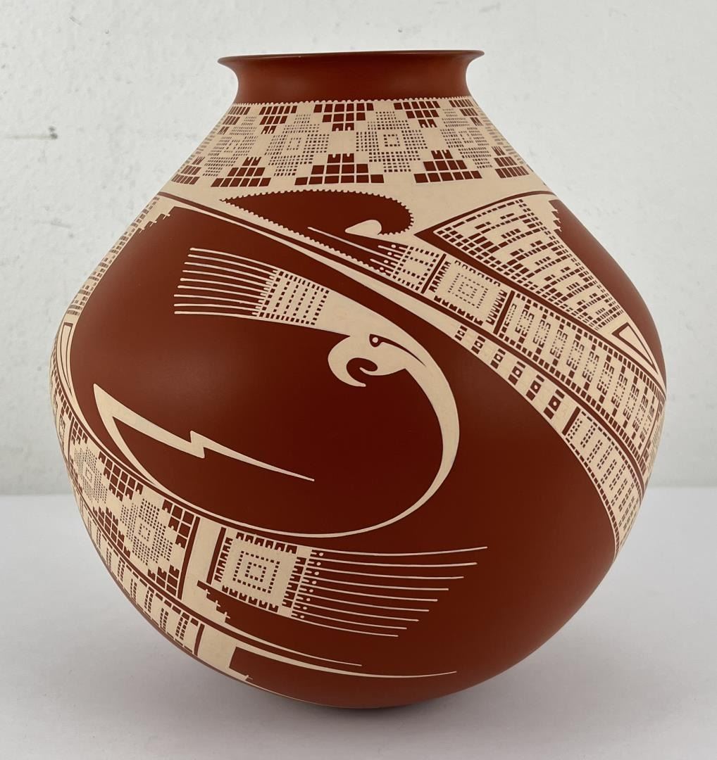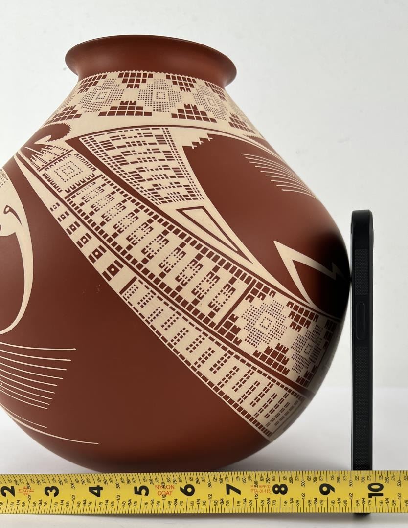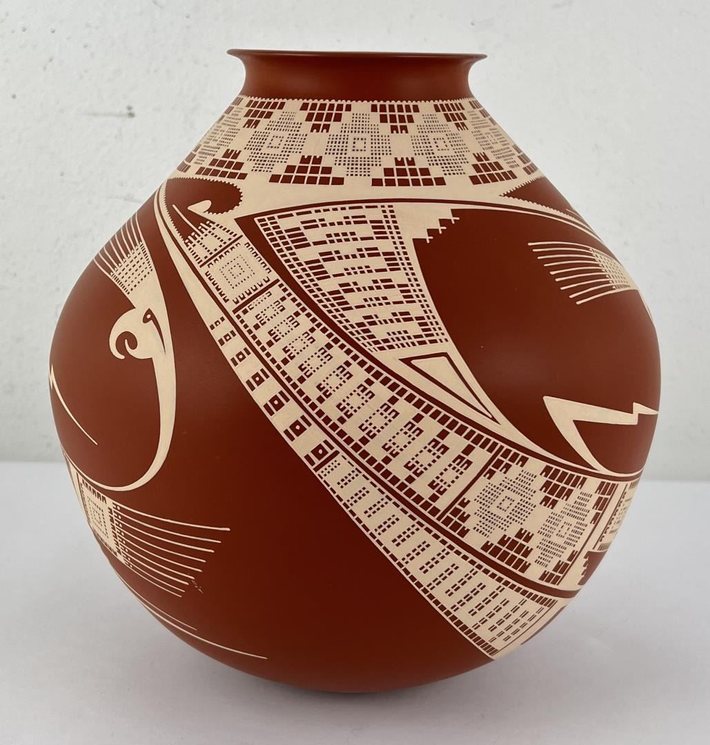 10 1/2" tall. Stunning large example of his work. Red glaze finish.