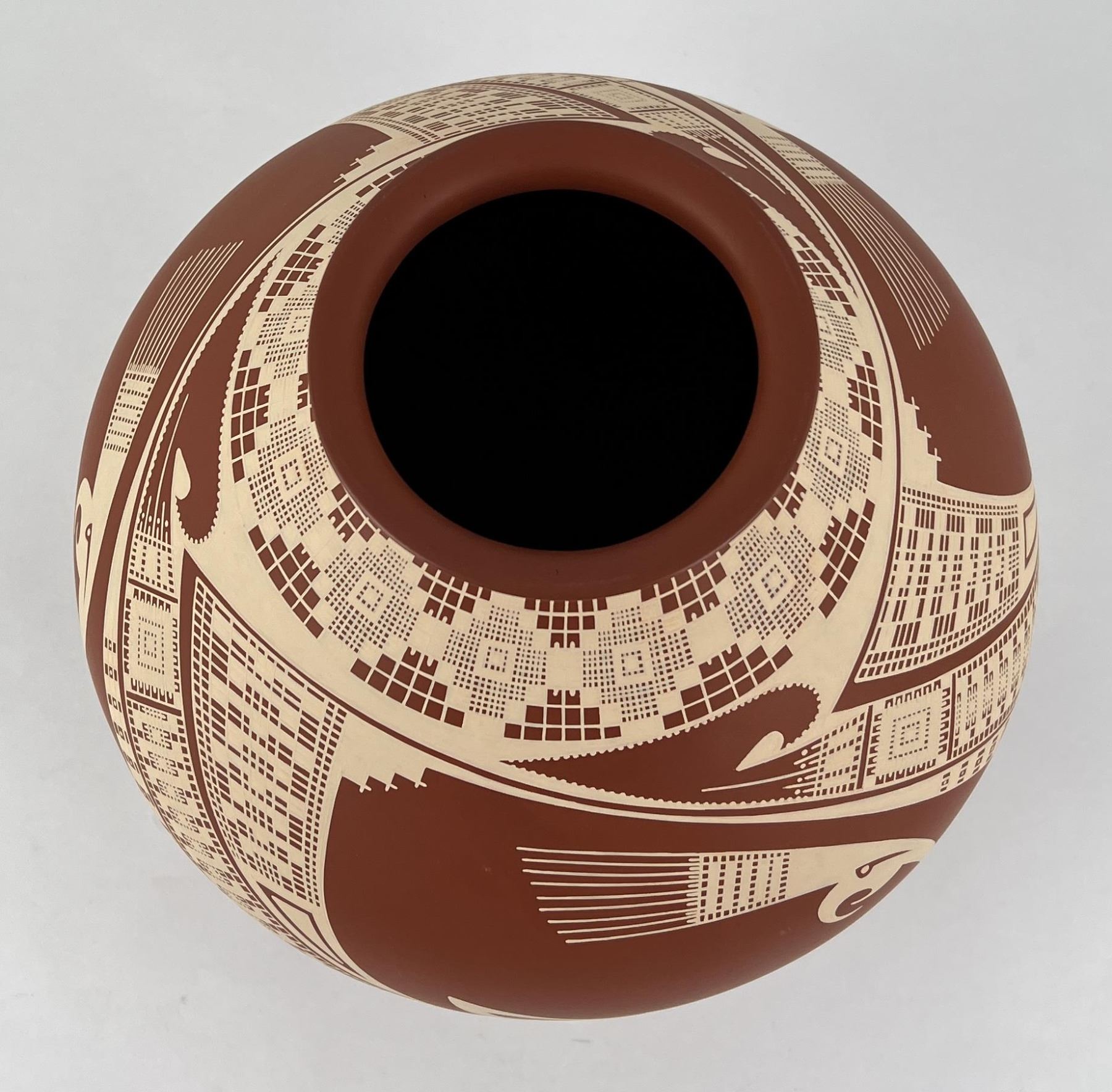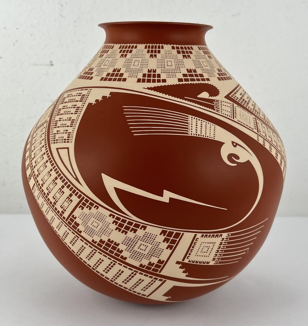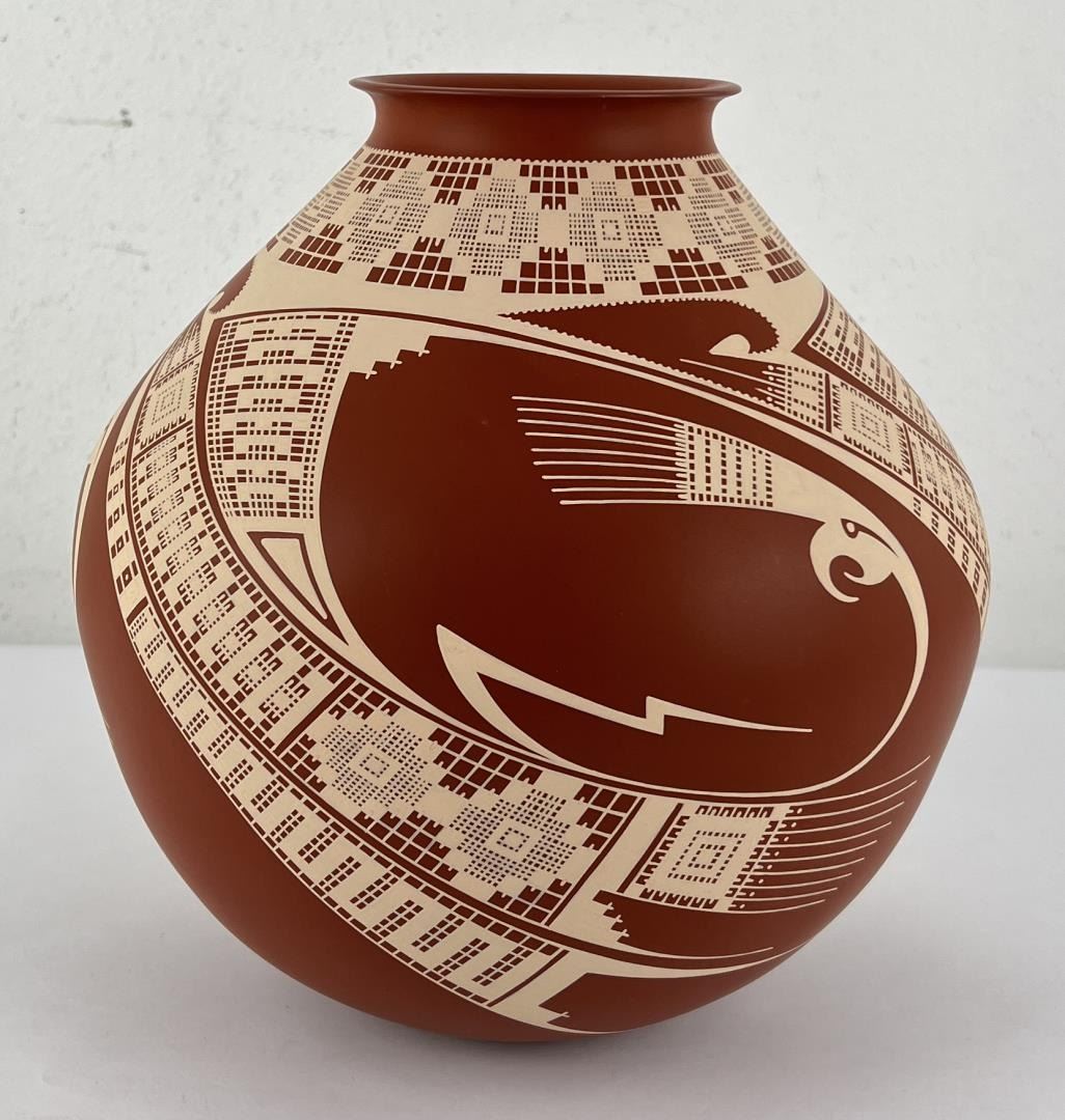 10 1/2" tall. Stunning large example of his work. Red glaze finish.