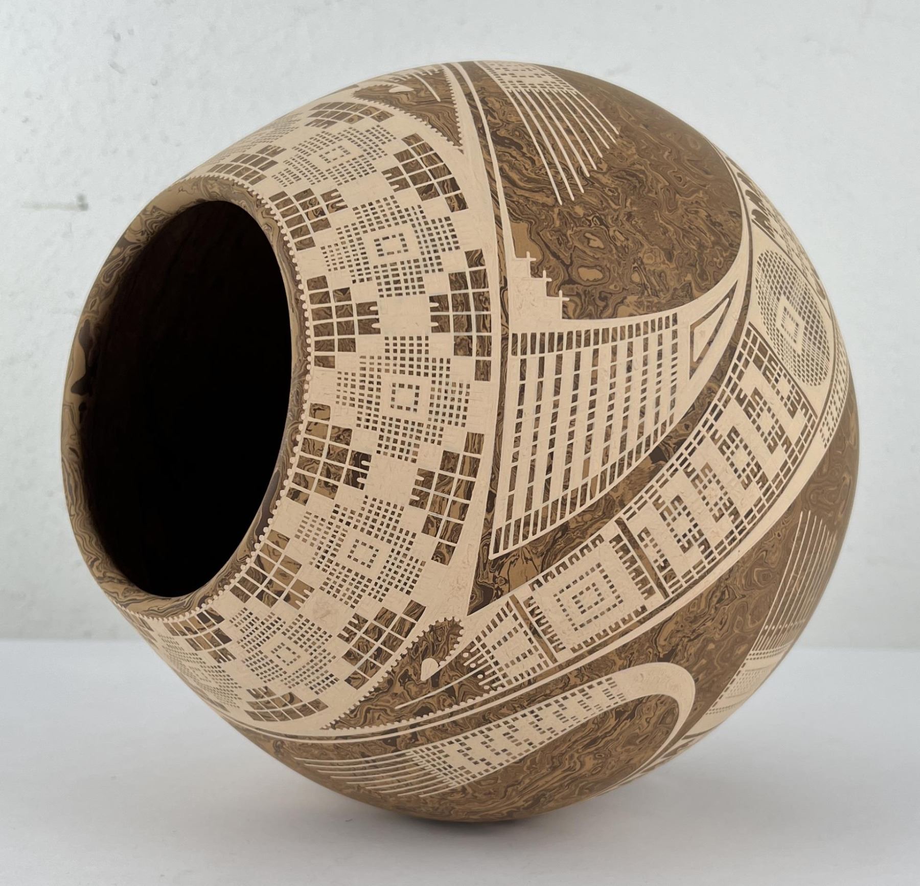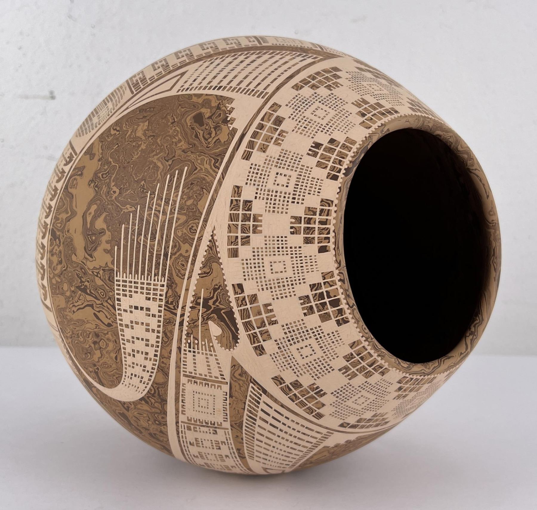 10 1/4" tall. Stunning large example of his work. Marbled glaze finish.
