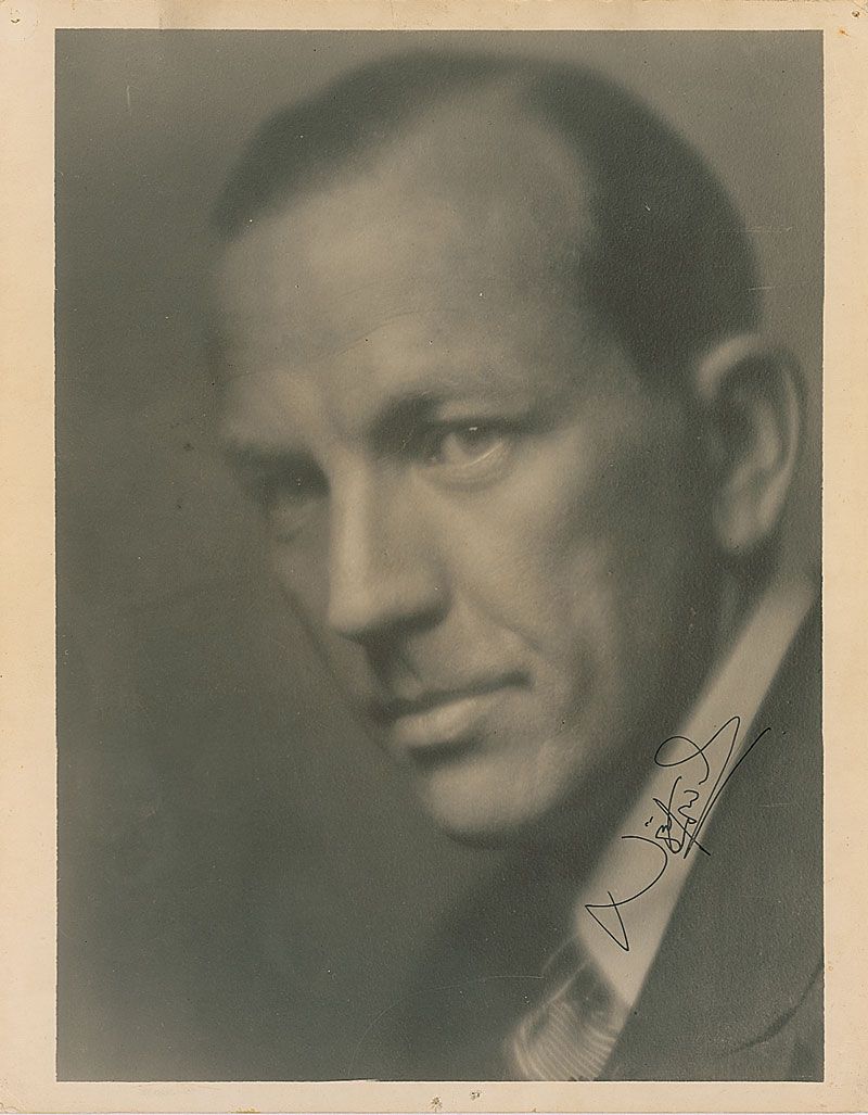 Vintage matte-finish 7.75 x 10 portrait of Coward, nicely signed over a light area of his collar in fountain pen. In fine condition, with tack holes and creases to corners and borders, not affecting the appealing image or bold signature.