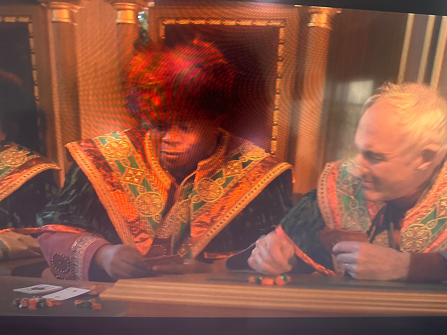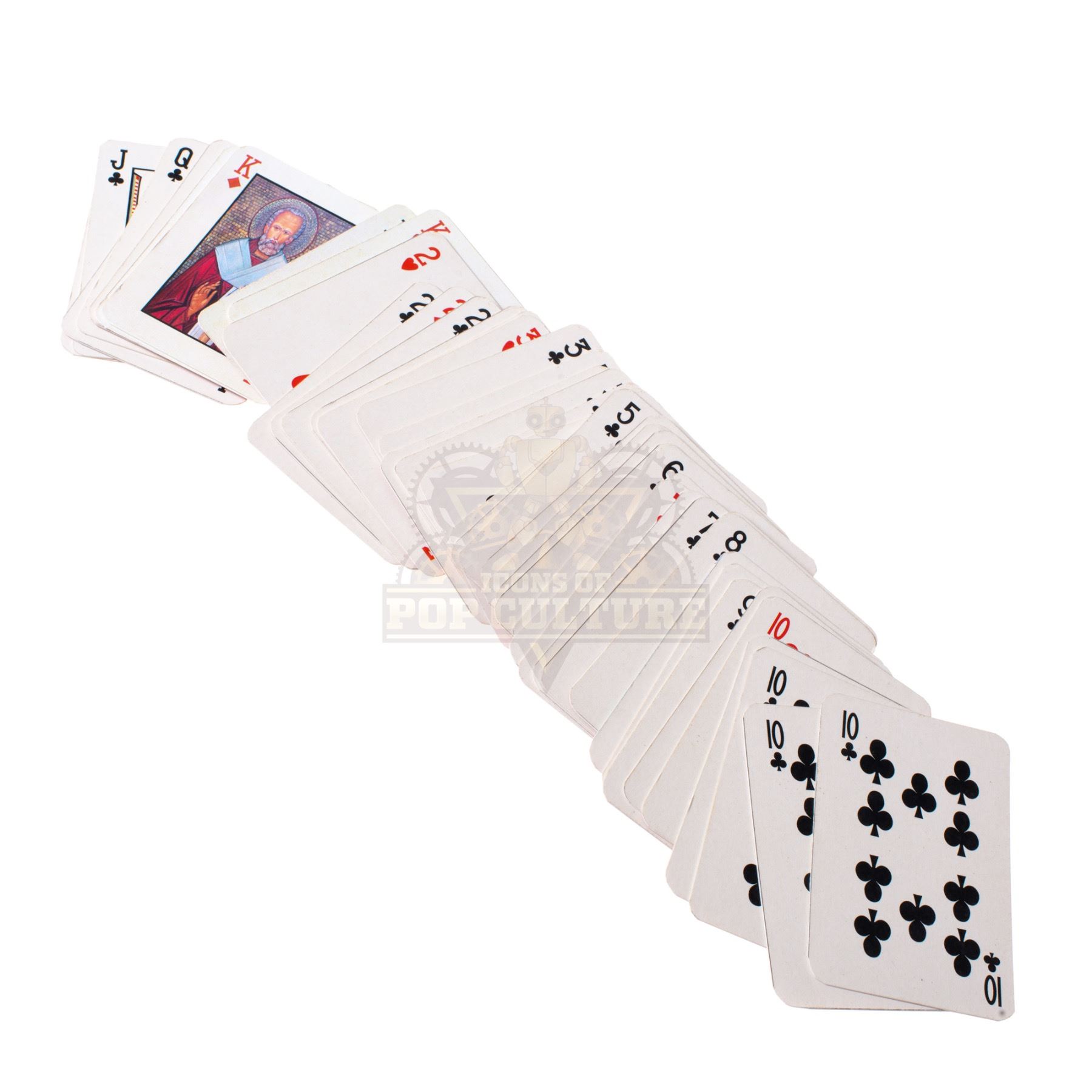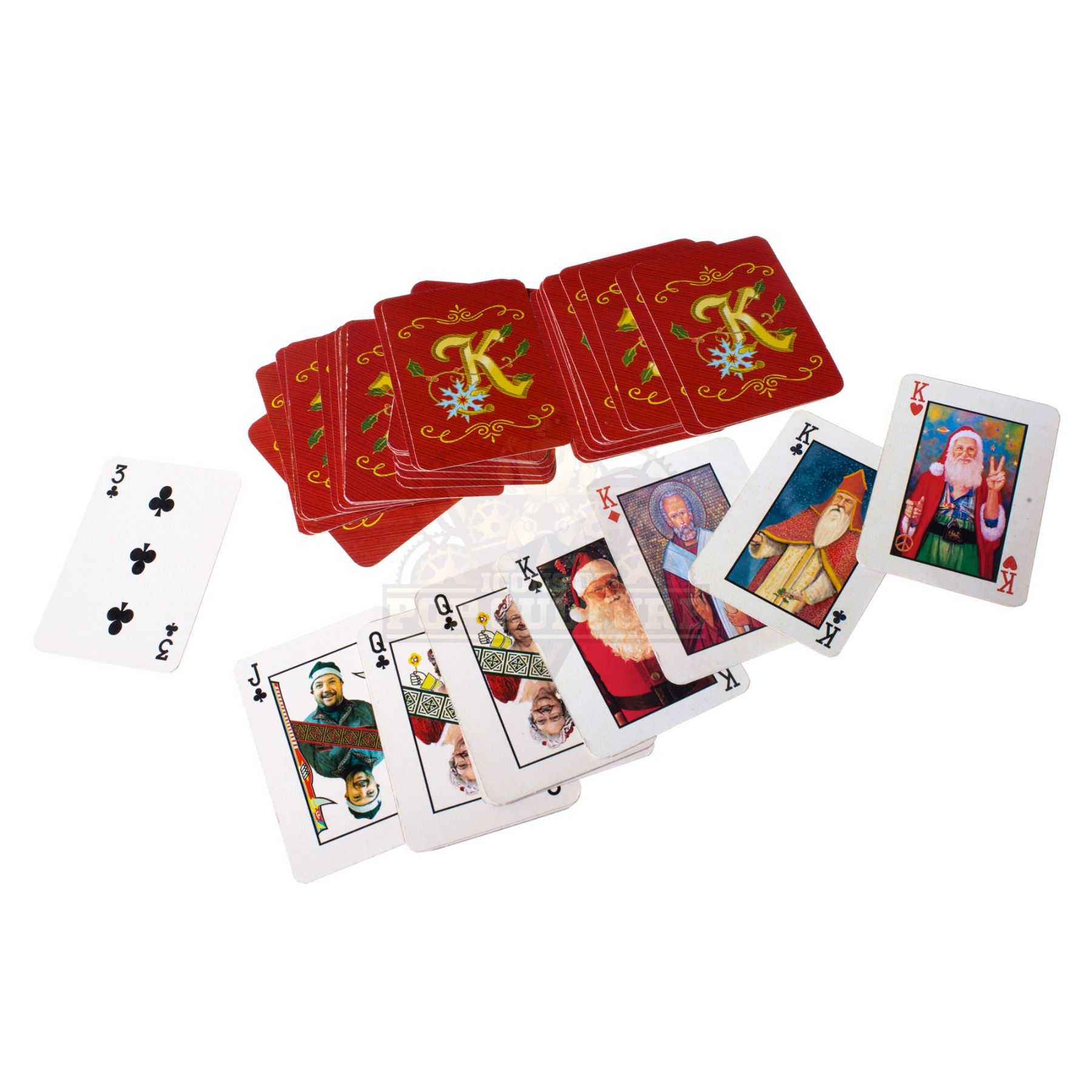 This set of playing cards were acquired and customized by the production for use by various actors during filming. The cards are seen on screen as the Elder Elf’s wait for Santa’s return to the North Pole. The cards feature the “Kringle” logo on the back side and feature the various Santa Claus of the Kringle family on the “King” cards, Mrs. Claus on the “Queen” cards and an Elf on the “Jack” cards.