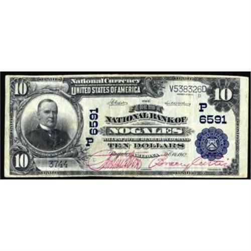 Nogales, AZ $10 1902 Plain Back Fr 628 The FNB