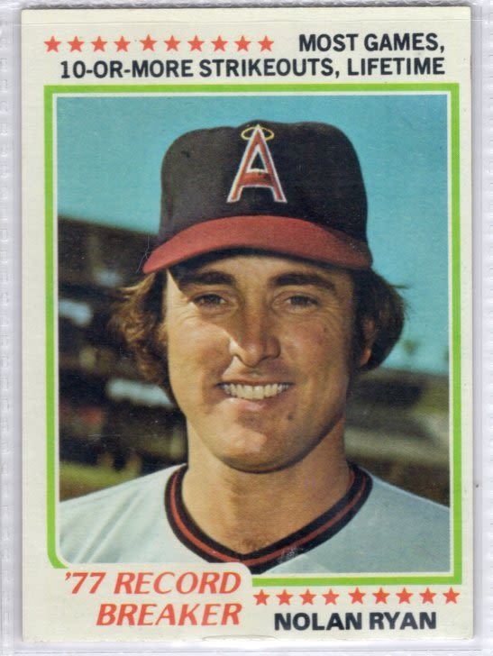 Nolan Ryan 1978 Topps '77 Record Breaker Card number 6