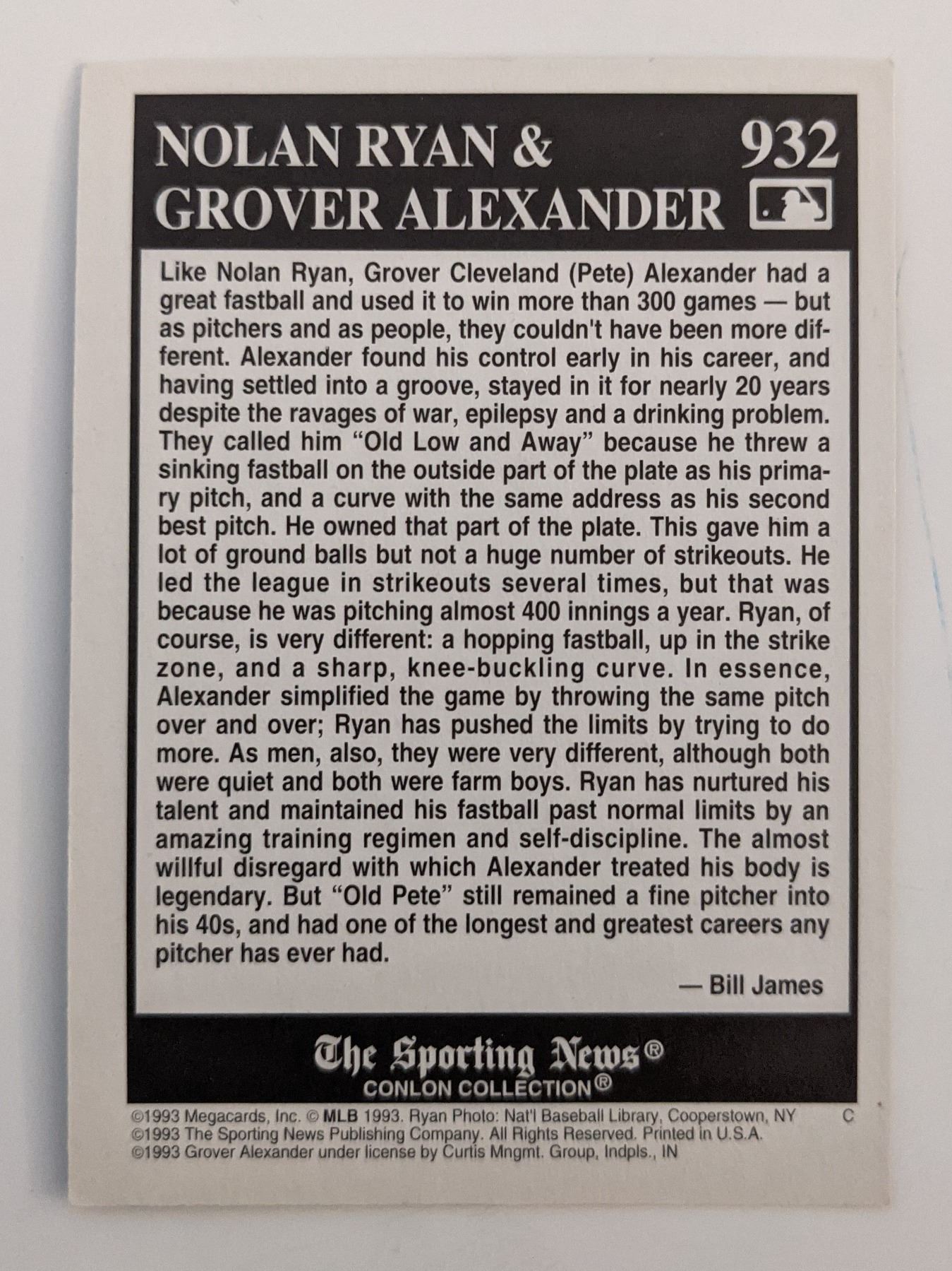 Nolan Ryan & Grover Alexander Different Fastballs Baseball Card - The Sporting News #932