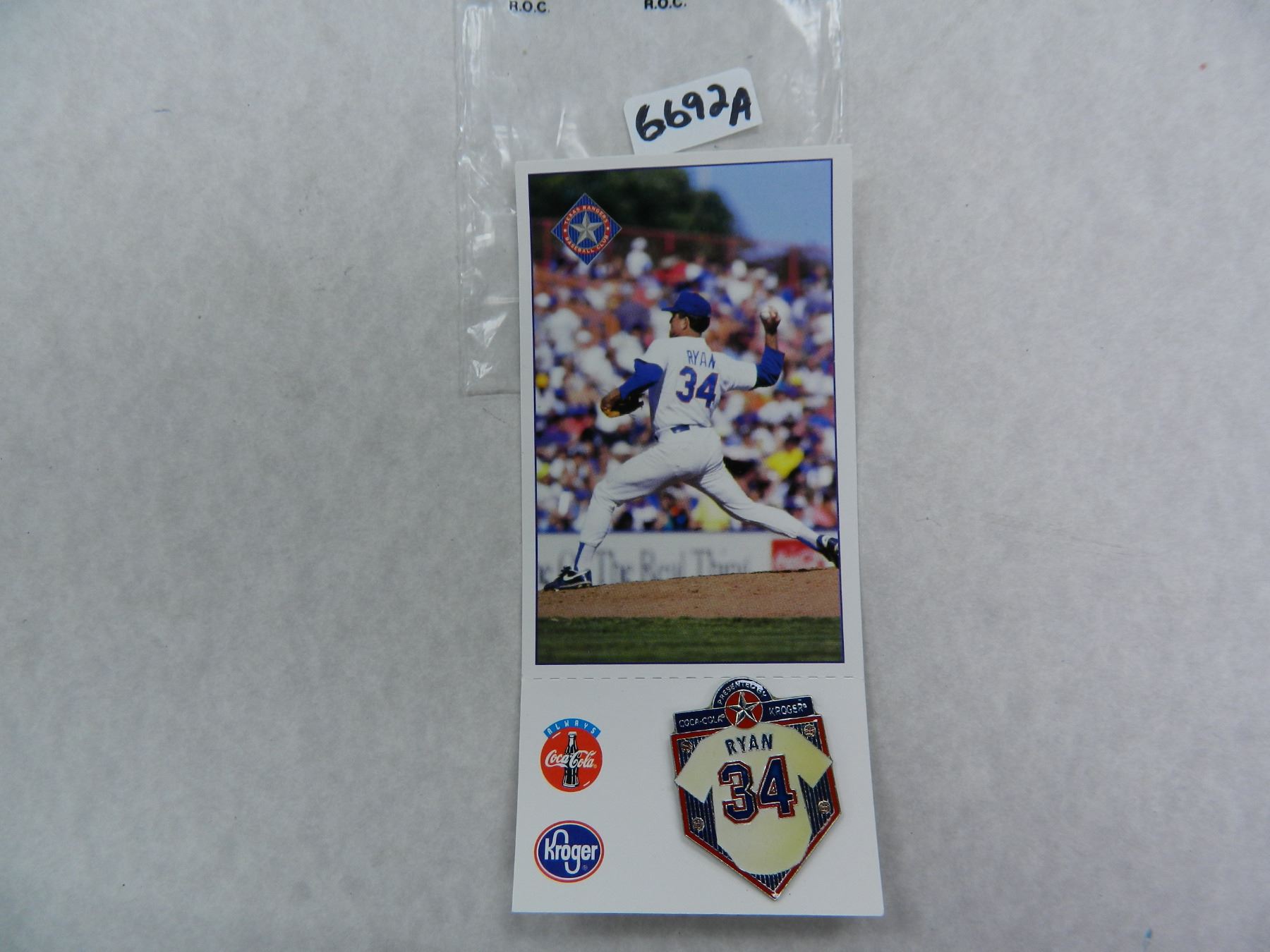Nolan Ryan Retirement Pin, Dallas,Kroger, Coca Cola, Texas Rangers. Scarce