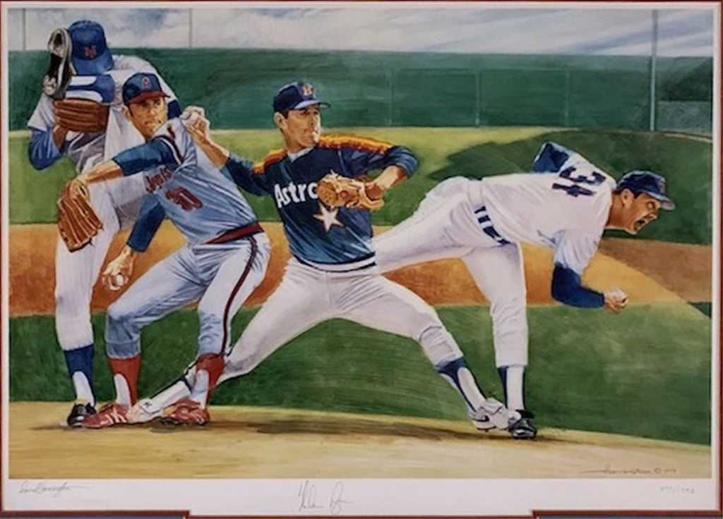 Nolan Ryan signed limited edition pitching sequence litho. 31x39 inches. JO187