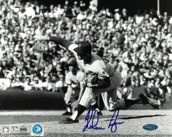 When the New York Mets scout first laid eyes on high school sophomore pitcher Nolan Ryan, he wrote in his report, "has the best arm I've seen in my life." After 27 seasons of major league baseball, Hall of Famer Nolan Ryan never let up. He set 53 major league records including seven no-hitters and 5,714 strikeouts, numbers that only begin to describe the illustrious career of one of baseball's best pitchers. The "Ryan Express" has hand signed this New York Mets Vintage B&W 8x10 Photo. MLB and Steiner Sports Hologram and Certificate of Authenticity from Steiner Sports.